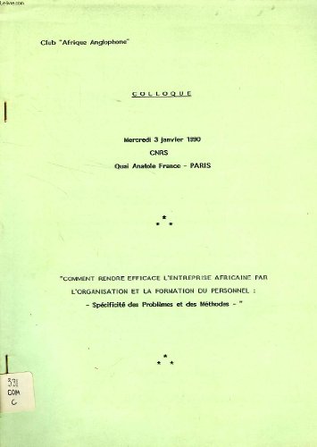 This book Comment rendre efficace l'entreprise africaine par l'organisation et la formation du personnel: specificite des problemes et des methodes you must read.